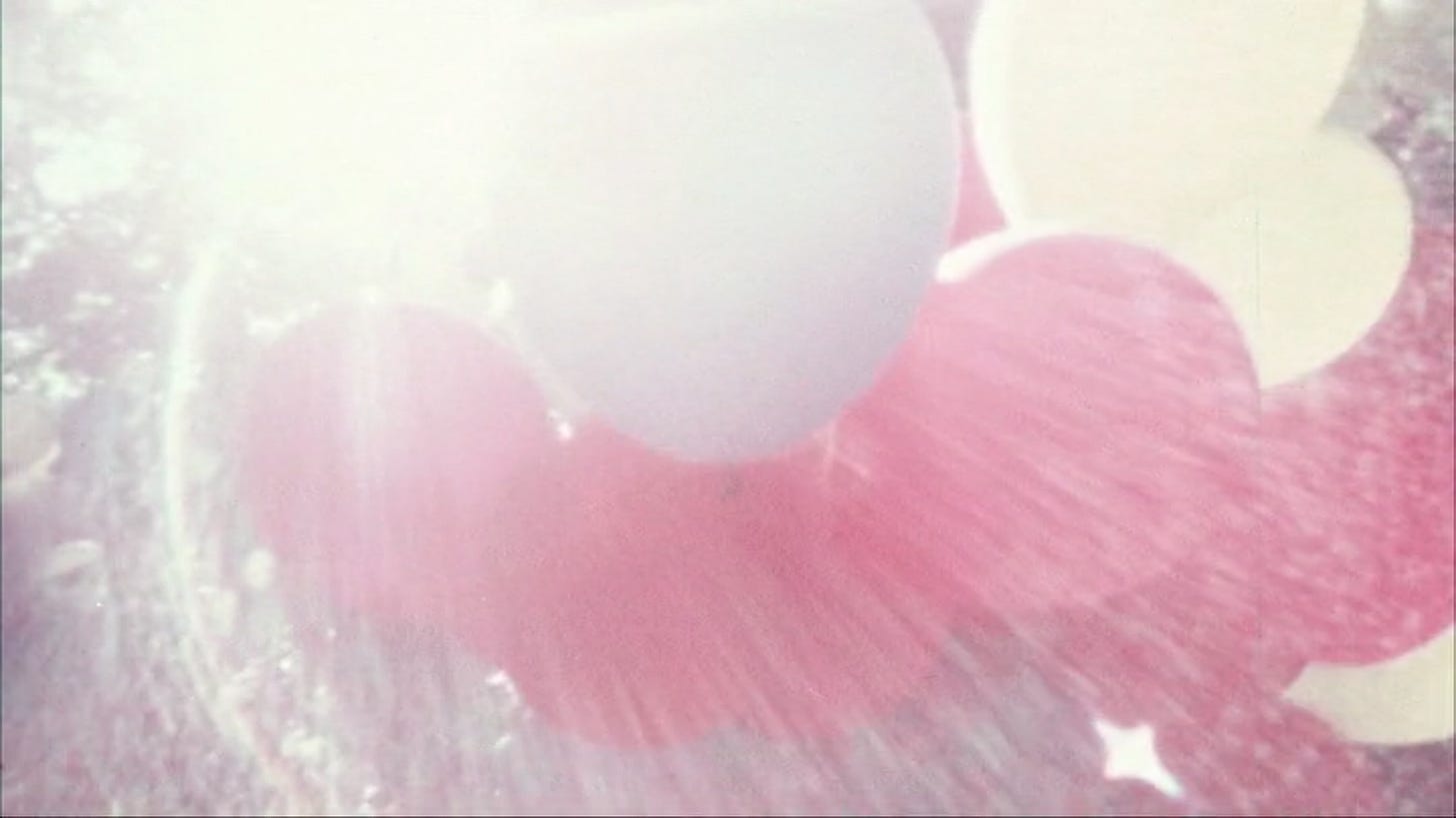 we pursue a hermeneutic path, transfixed by the loneliness of engagement, the fundamental solitude of it, fixation with a psychodynamic, interior charge in its very mode of externalization. balloon arrangements in the forest, static magnetism, and the brownian motion of attraction in an oneiric haze (echoes of rollin? maybe?).